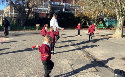 One of our favourite events this half term was when 'Skip2Bfit' came to visit our school, which you can see in the picture. The skipping instructor was called David and he taught us how to skip. We then used special skipping ropes to count how many skips we could do in 2 minutes. Some of us were very competitive! We all tried really hard to beat our own scores and to get a personal best.